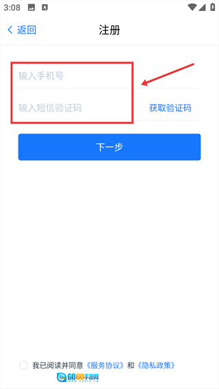 3、填写手机号和验证码。