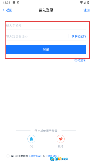 1、打开跳转至【请先登录】页面,输入手机号与验证码,或使用其他账号登录,并勾选相关协议。