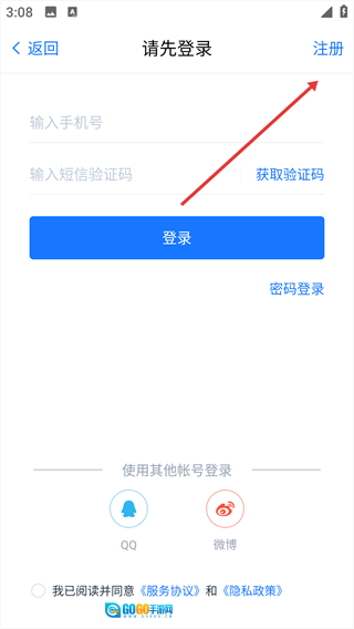 2、在登录界面,点击右上角的“注册”按钮,即可进入注册页面。