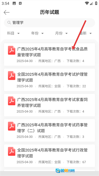 3、在搜索结果列表中,点击目标试题,进入详情页。