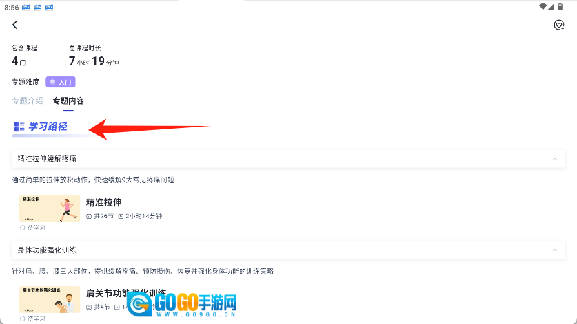 进入课程专题页面后,点击学习路径标签,就能查看模块化的课程内容以及对应的学习进度安排了。