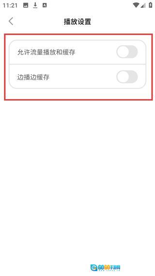 4、进入【播放设置】页面后,可通过操作【允许流量播放和缓存】【边播边缓存】对应的开关,来调整这些功能的状态。