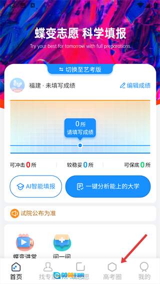 1、点击底部的【高考圈】选项,即可进入高考圈的动态交流页面。