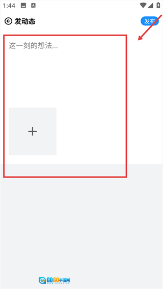 3、在输入框中填写内容,还能点击【+】按钮添加图片素材,让动态内容更完善。