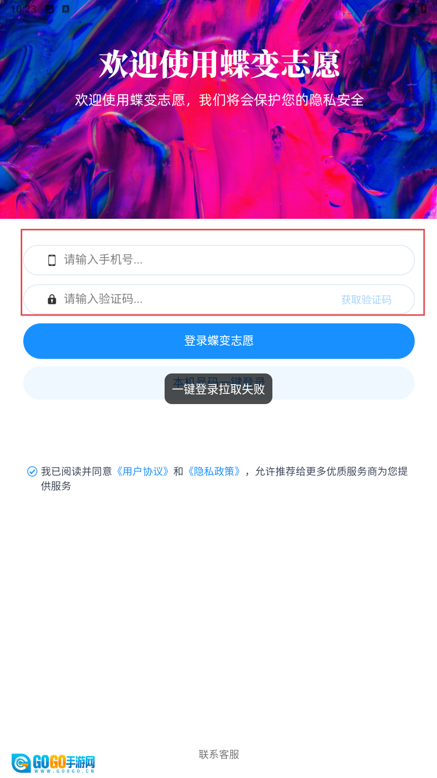 3、点击【登录蝶变志愿】按钮完成登录操作,也可以选择【本机号码一键登录】的方式进行尝试。