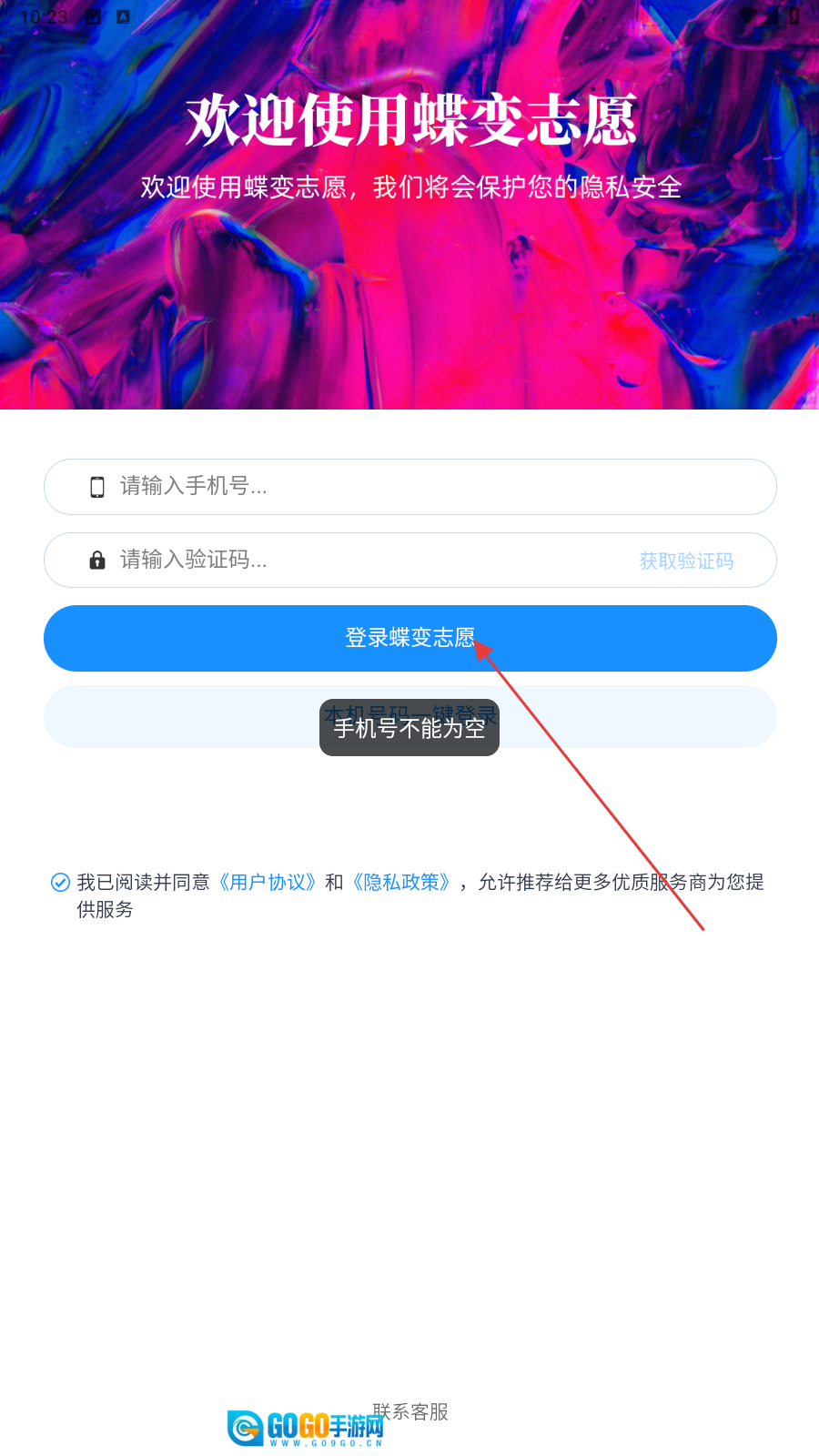1、请勾选【我已阅读并同意《用户协议》与《隐私政策》】这一选项。