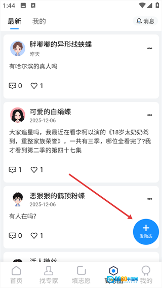 2、在高考圈页面,点击右下角【发动态】按钮。
