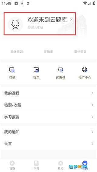 2、进入相应页面后,找到【欢迎来到云题库-登录/注册】板块。