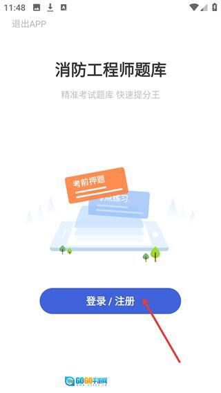 4、进入【消防工程师题库】页面后,找到并点击【登录/注册】按钮,即可完成账号的登录或注册操作。