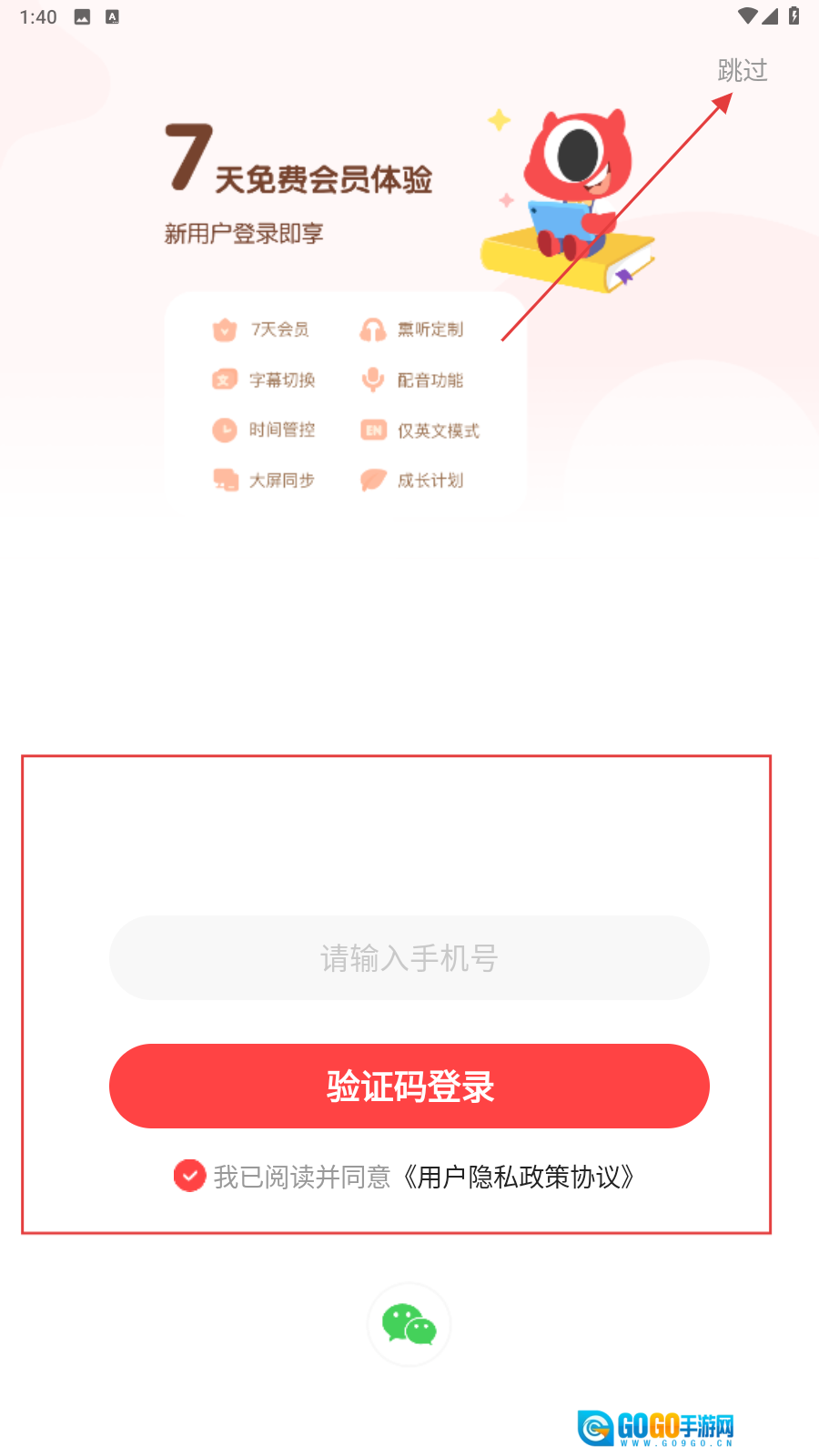 1、新用户登录页面支持两种方式:一是输入手机号并通过验证码完成登录;二是点击【跳过】按钮直接进入体验模式。