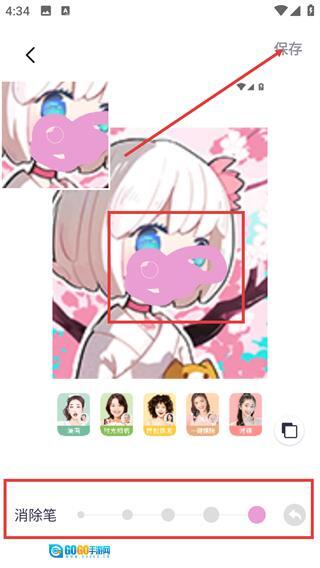3、借助消除笔工具对图片细节进行调整,操作完成后点击右上角的【保存】按钮,就能将当前编辑的内容保存下来,以便后续查看。