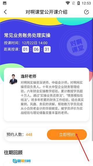 3、进入课程介绍页面后,可查看授课时间【12月22日-14:00】与老师相关信息,点击【立即预约】按钮就能完成该公开课的预约操作。