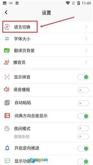 3、进入【设置】界面,找到【语言切换】功能并点击。