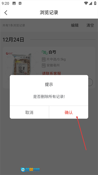 3、在浏览记录页面能够查看已浏览过的商品,点击【清空】按钮即可。