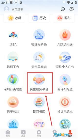 2、进入【我的】页面后,找到并点击【民生服务平台】选项,就能进入该平台的服务分类界面。