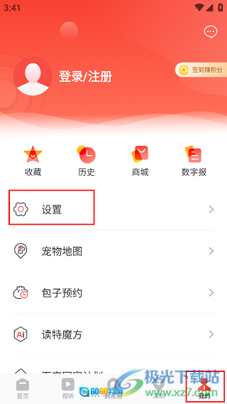 2、然后点击右下角菜单栏里的“我的”选项,进入个人中心界面后,要从列表中选择“设置”并点击。