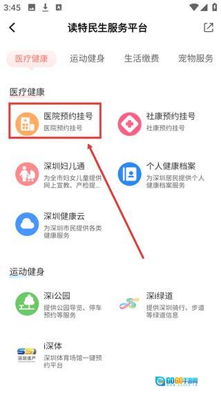 4、在【医疗健康】分类下,找到【医院预约挂号】选项并点击,即可进入对应的挂号服务界面。