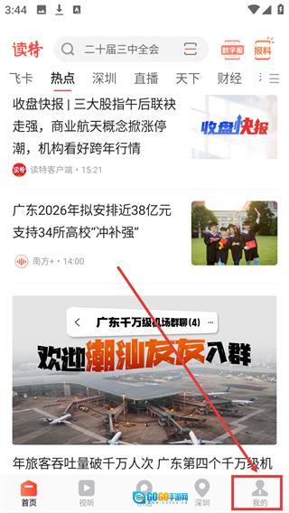 1、打开手机里的读特客户端,首页上呈现着不少当下热门、最新的新闻内容。