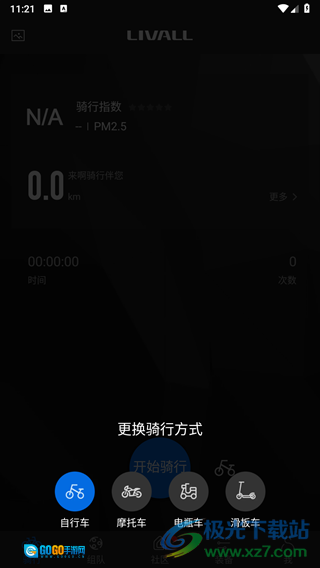 2、也能够切换骑行的方式,包含自行车、摩托车、电瓶车和滑板车这四种选择。