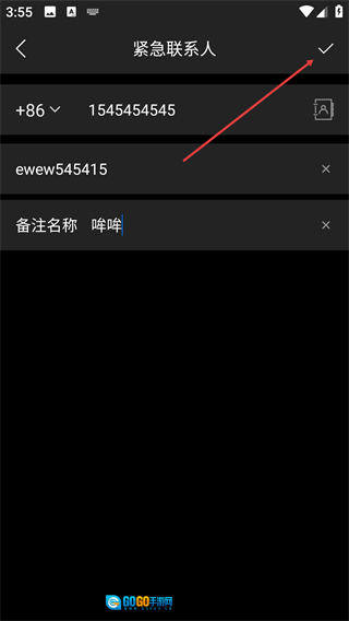 4、填写完毕后,点击右上角的【√】按钮,就能完成紧急联系人的添加流程。
