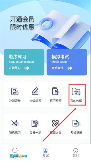 1、在【考试】页面找到并点击【我的收藏】选项,即可进入收藏夹界面。
