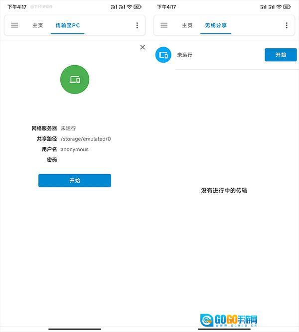 4.文件传送支持传输到PC以及无线分享,点击开始时需要确保设备处于同一局域网内。