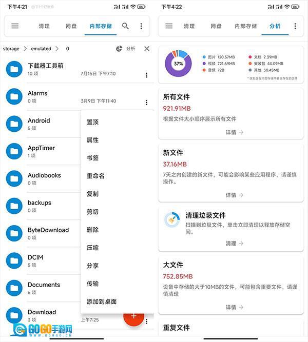 查看文件夹大小及占用比例,清楚存储占用情况。