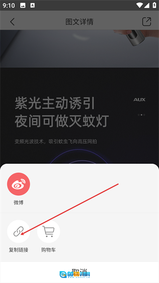 4、弹出分享选项,点击【复制链接】,分享该商品。