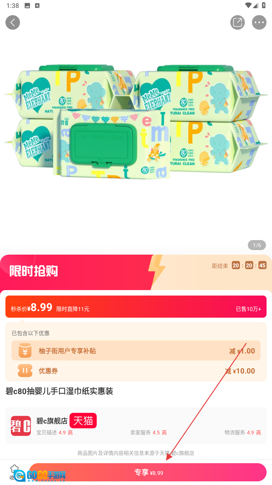 3、进入商品详情页面,查看优惠信息后,点击【专享】按钮即可完成购买。