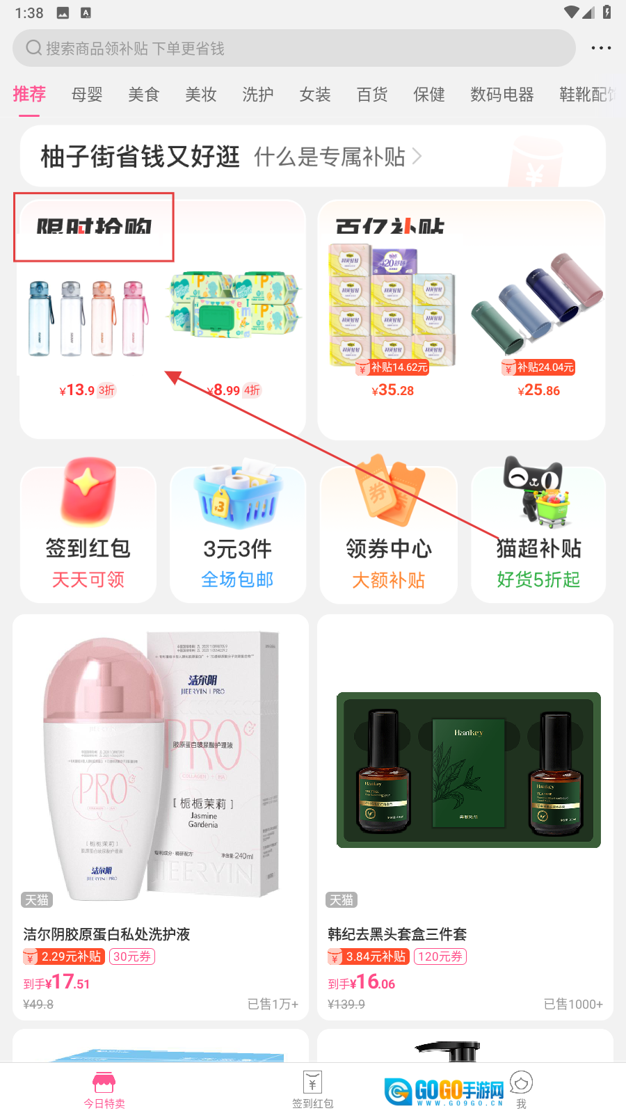 1、点击【限时抢购】,即可浏览各类享受限时优惠的商品,不错过超值的购买契机。