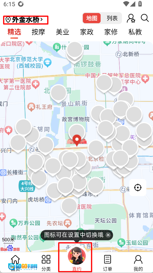 2、用户能够借助“直约”功能,依据距离对服务人员进行筛选,自行挑选预约的对象。