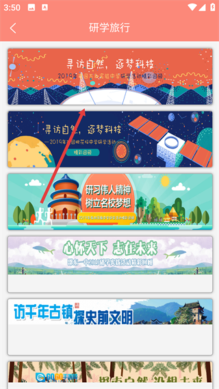 2、在研学旅行活动列表中,选择目标活动。