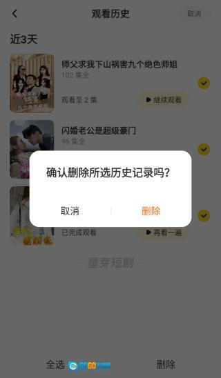 4、点击右上角的“编辑”按钮,勾选想要删除的观剧记录,然后一键删除即可。