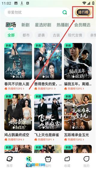 1、在剧场页面点击右上角的【排行榜】按钮,即可进入榜单页面,查看各类剧集的热度排名情况。