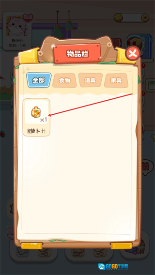 1、点击右下角的【物品栏】按钮,即可打开陈列着各类道具的物品栏界面。