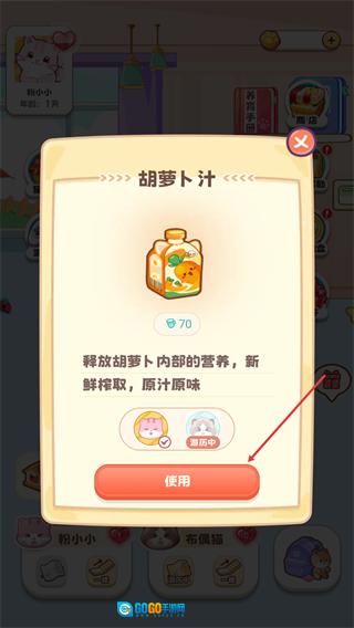 3、选择目标猫咪后,点击底部的【使用】按钮。