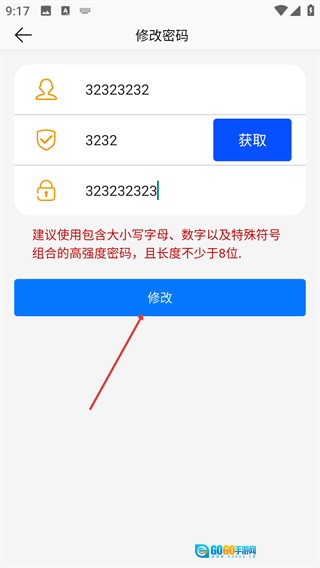 4、填好后,点击【修改】按钮,完成密码修改操作。