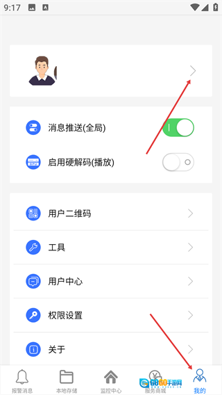 1、进入【我的】页面,点击头像区域对应的箭头。