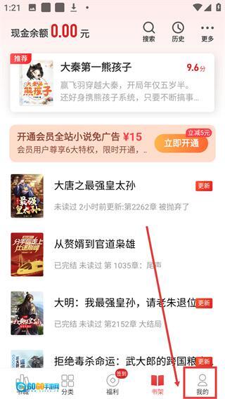 1、打开书架页面后,点击底部的【我的】选项,就能进入个人中心页面。