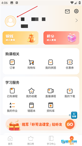 2、进入【我的】页面后,点击头像所在区域,即可进入学员档案的编辑界面。