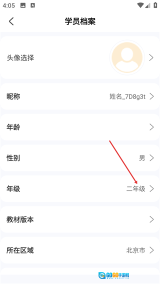 3、在学员档案中,点击下方【年级】选项。