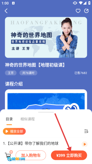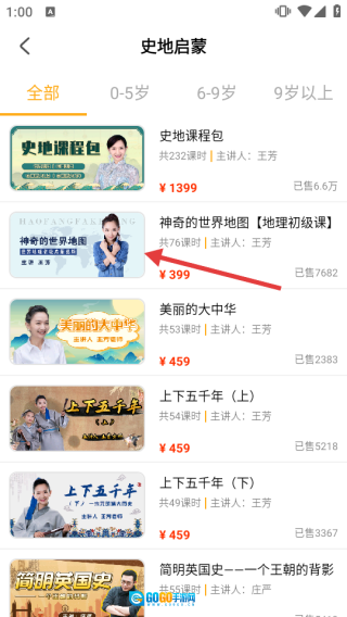 2、进入史地启蒙页面后,挑选自己感兴趣的课程,进而了解课程的详细信息。