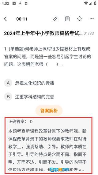 4、点击【答案解析】后,系统会呈现该题的正确答案以及详细的解析内容,以此助力用户理解题目所对应的知识点。