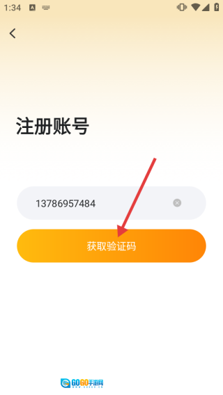 2、进入【注册账号】页面,输入手机号后点击【获取验证码】按钮,随后等待接收验证码。