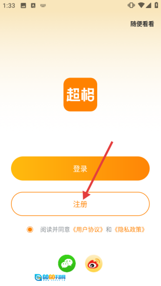 1、启动超格软件,在登录界面点击【注册】按钮,从而进入注册环节。