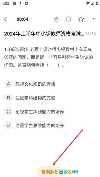 进入试题答题页面后,即可开始作答题目;完成作答后,找到页面上的【答案解析】按钮,点击该按钮就能查看题目解析。