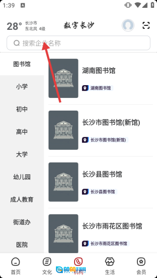 3、在机构页面顶部搜索栏输入企业名称等关键词,可查找图书馆、学校、医院等相关机构信息。