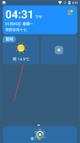 4、选好城市后,桌面就会显示该城市的实时天气情况,这样天气卡片就添加完成了。