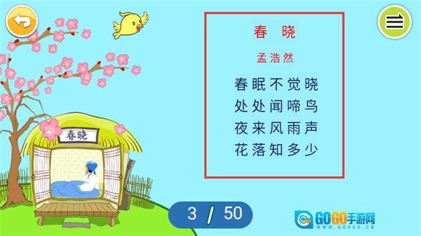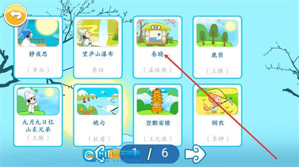 3、进入唐诗列表页,点击【春晓】即可进入该诗的详细学习页。