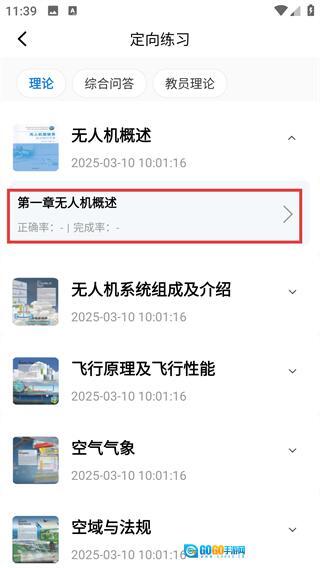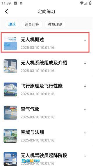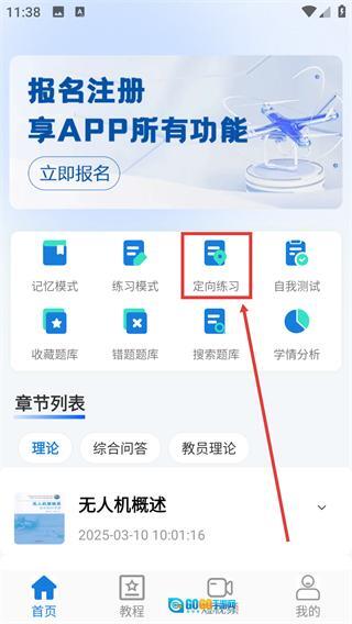 2、进入【定向练习】页面后,能看到【无人机概述】等多个学习章节,可根据需求选择对应的章节进行练习。